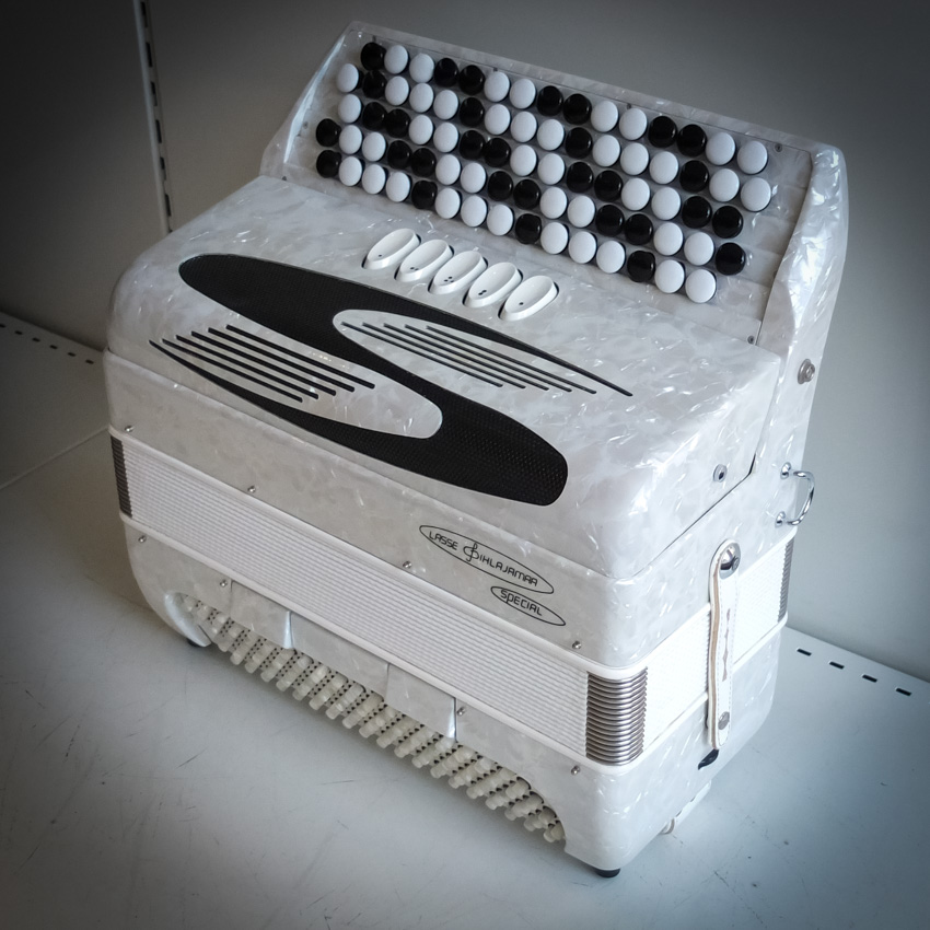 Pihlajamaa Stage Star 3 3-äänikertainen diskantti: 44 soivaa ääntä (ääniala d – a3) standardibasso: 118 näppäintä korkeus: 41 cm 2.980 € Takaisin: Käytetyt harmonikat